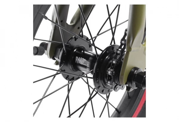 | Moyeux | F : 3/8″ roulements à billes Alu (10mm) / R : 14mm cassette 9T à roulements semi scellés |