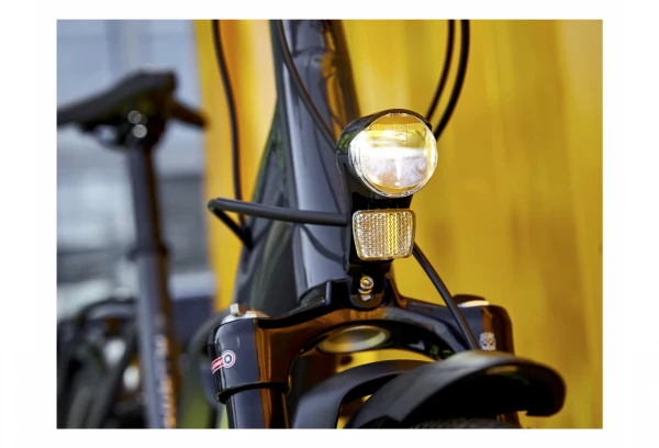 | Fourche | SR Suntour Mobie 25, ressort hélicoïdal, blocage, ajustement du rebond, pivot conique en Alu, axe traversant 15×100 mm, débattement de 45 mm |