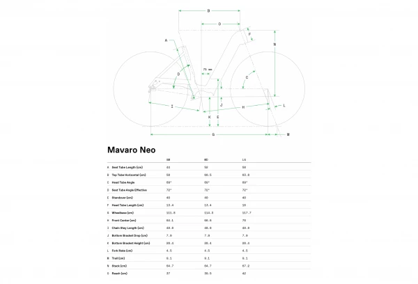 | Cadre | Mavaro Neo Si SmartForm C1 Alloy step-thru frame, removable downtube battery, fully internal cable routing, 135x9mm sliding dropout, post mount disc, headtube waterbottle mounts, integrated daytime running light, HDT child seat/cargo mount compatible |
