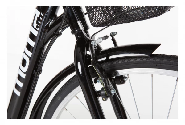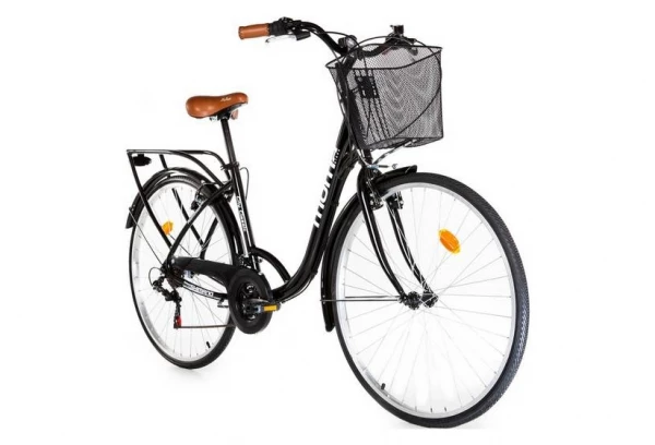 | Accessoires | Porte-bagages en aluminium integré au cadre / Panier / Protège-chaîne / Garde-boue / Phare avant et arrière / Béquille / Sonnette |