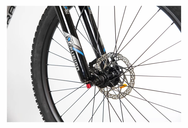 | Fourche | X-Fusion Velvet RL2 26, 120mm, ressort pneumatique, pivot conique, axe 9×100 mm, plongeurs en aluminium 32 mm, déport de 41 mm. Réglages : blocage, rebond, précontrainte de l’amortisseur pneumatique |