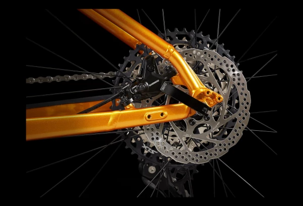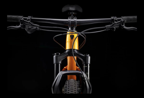 | Cadre | Aluminium : Alpha Gold aluminium, douille de direction conique, acheminement interne du câble de dérailleur et de tige de selle télescopique, fixations pour porte-bagages et garde-boue, Boost141, QR 5 mm |